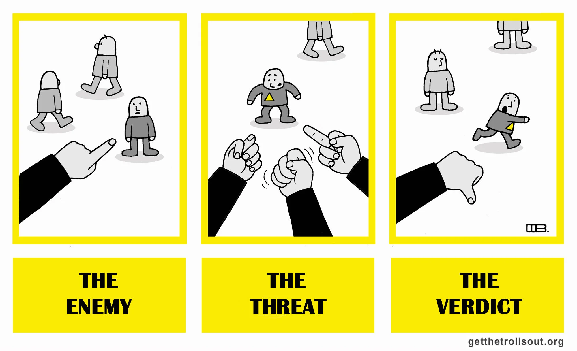 A cartoon by Bela Weisz for Get the Trolls Out!